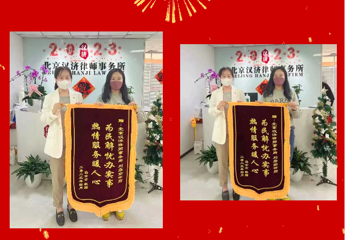 4月19日,当事人马女士带着写有“为民解忧办实事 热情服务暖人心”的锦旗,向汉济律所刘彦茹律师表达谢意。